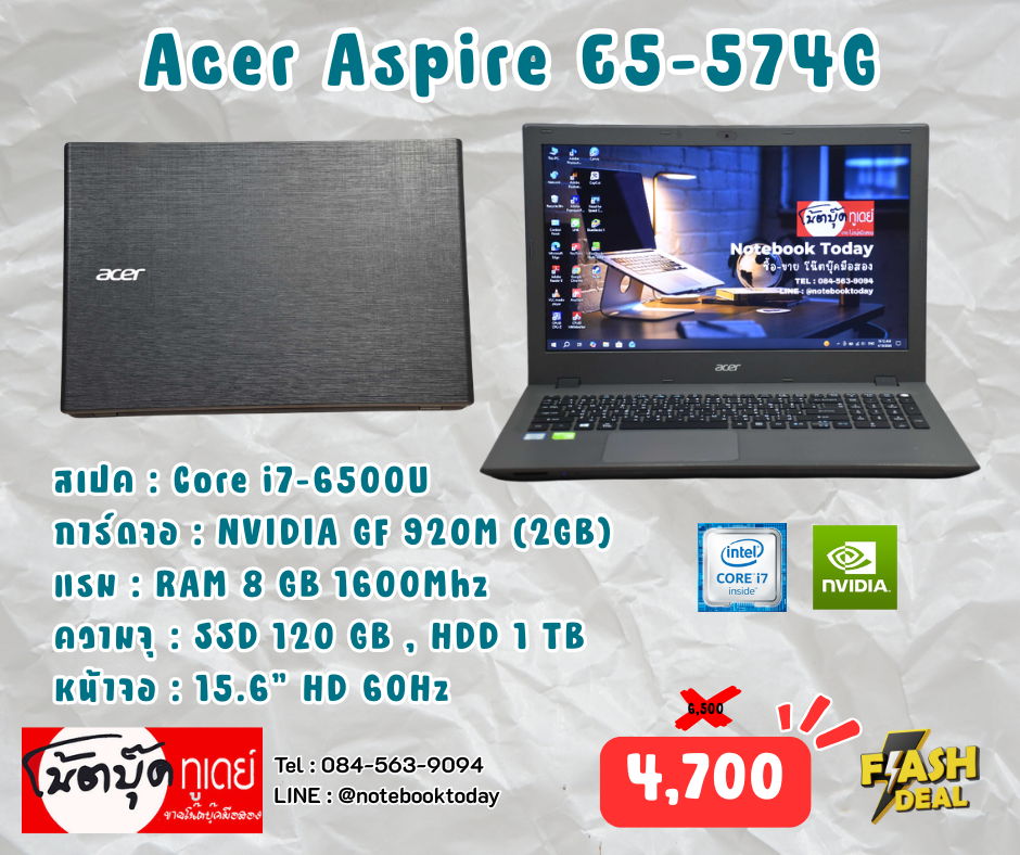 โน๊ตบุ๊คสเปคดี ทำงานดีและเล่นเกมได้ด้วย กับรุ่น Acer Aspire E5-574G มาพร้อมสเปค CPU Intel Core i7-6500U (2.50 GHz up to 3.10 GHz) 2คลอ 4เธรต แป้นพิมเต็มมีตัวเลขแยกพร้อมใช้ จัดเต็ม RAM 8 GB DDR3 ความจุในตัวเครื่อง2ตัว SSD 120 GB + HDD 1 TB เปิดปิดเครื่อง เปิดรันโปรแกรมได้รวดเร็วทันใจเลย จอ 15.6 นิ้ว HD การ์ดจอแยก NVIDIA GeForce 920M (2GB GDDR3) เล่นเกมได้ วาโร ฟีฟ่า แร๊คนาร๊อค โรลบ๊อก มายคราฟ สตรีมเกมได้เลย หรือจะเป็นงานกราฟฟิค ตัดรูป ตัดคลิป ตัดต่อวิดิโอ ทำงานเขียนแบบ Cad SketUp capcut Canva ก็ทำได้เลย ตัวนี้แบตเบิกศูนย์มาใหม่เลยใช้งานได้ยาวๆสบายๆ มาพร้อมวิน10เรียบร้อย ลงโปรแกรมพื้นฐานต่างๆให้พร้อมใช้งาน สินค้าเป็นมือ2การทำงานปกติดีสภาพตามตัวเครื่องอาจจะมีรอยขีดข่วนมาบ้างตามการใช้งานมา