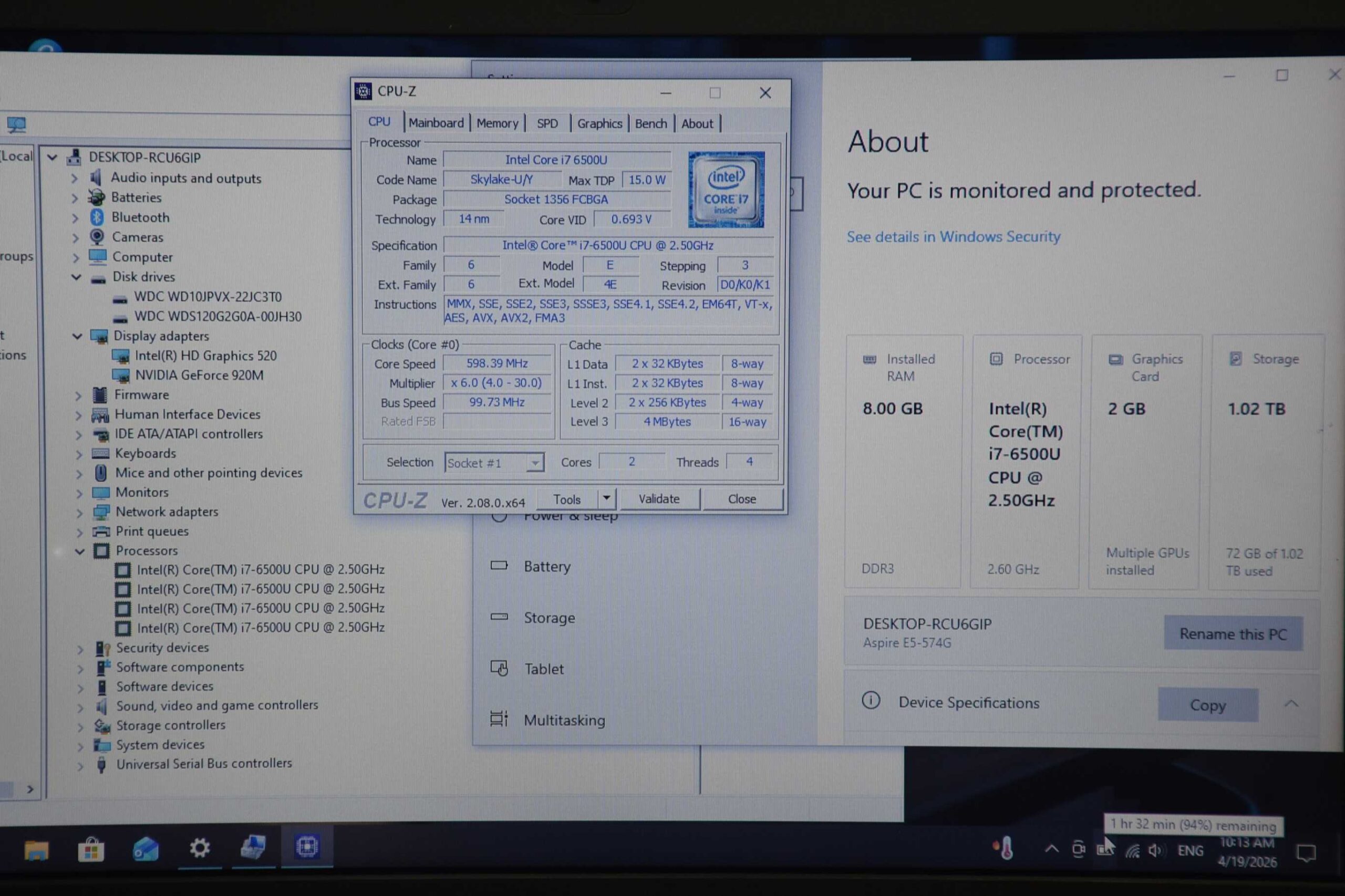 CPU Intel Core i7-6500U (2.50 GHz up to 3.10 GHz)