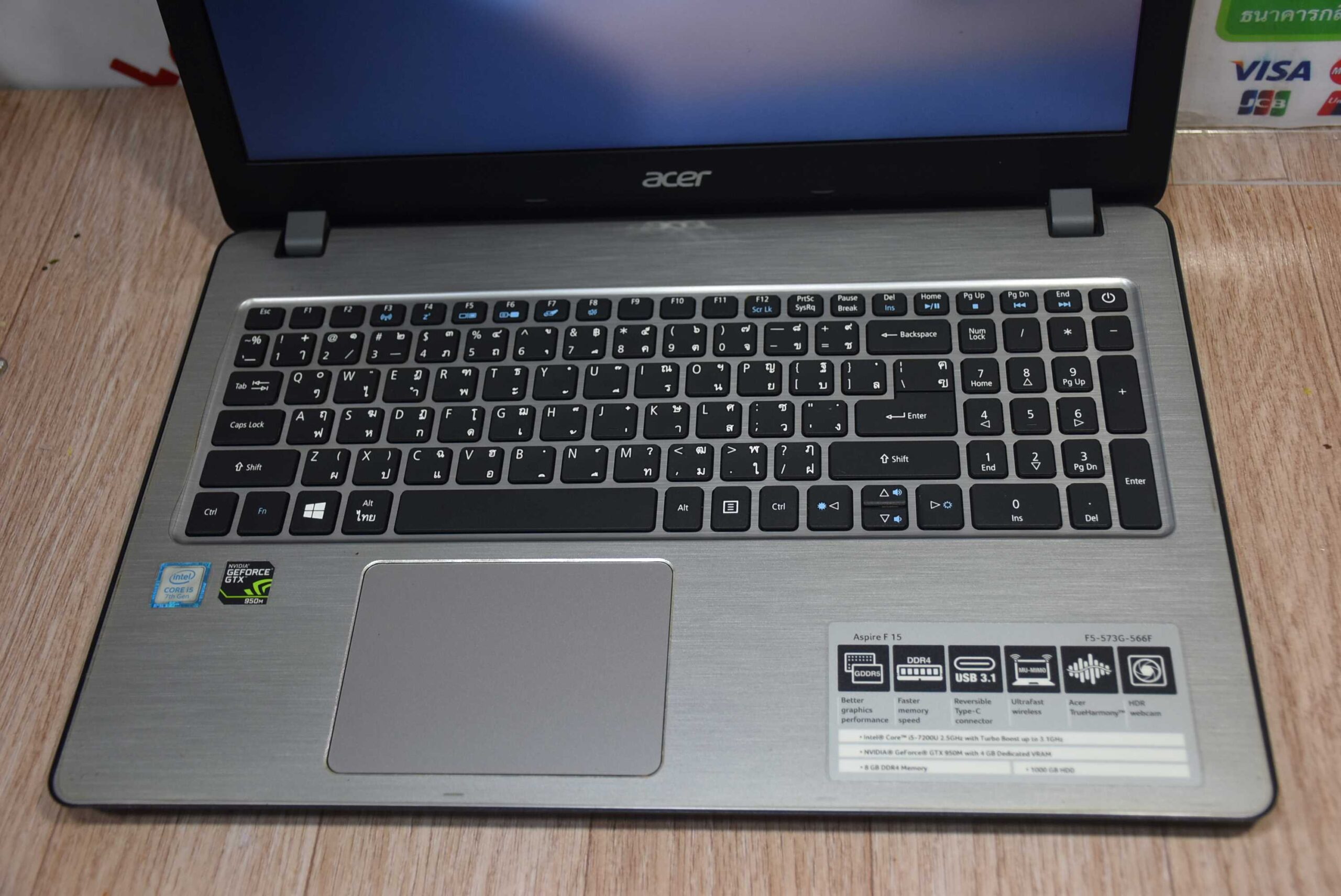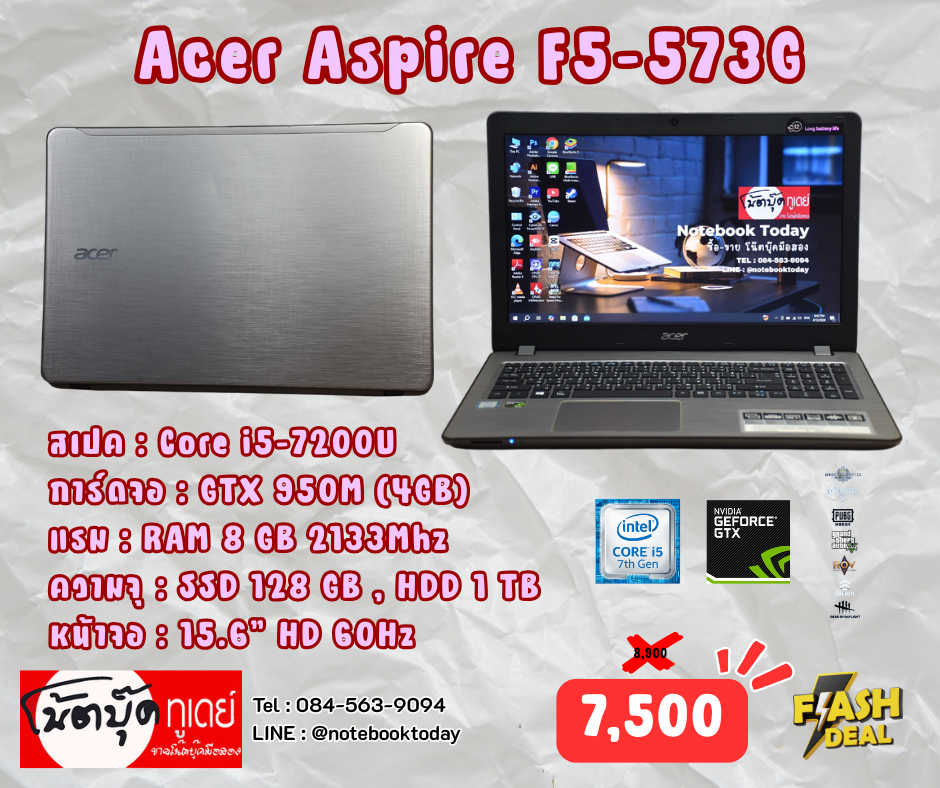 โน๊ตบุ๊คสายทำงานที่เล่รเกมได้ดีอีกด้วย กับรุ่น Acer Aspire F5-573G มาพร้อมสเปค CPU Intel Core i5-7200U (2.5 GHz up to 3.10 GHz) 2คลอ 4เธรต แป้นพิมเต็มมีตัวเลขแยกพร้อมใช้ จัดเต็ม RAM 8 GB อัพเพิ่มได้อีก1ช่อง ความจุในตัวเครื่อง2ตัว SSD 128 GB M.2 + HDD 1 TB เปิดปิดเครื่อง เปิดรันโปรแกรมได้รวดเร็วทันใจเลย จอ 15.6 นิ้ว HD การ์ดจอแยก NVIDIA GTX 950M (4GB GDDR5) เล่นเกมได้ วาโร ฟีฟ่า แร๊คนาร๊อค โรลบ๊อก มายคราฟ หรือจะเป็นงานกราฟฟิค ตัดรูป ตัดคลิป ตัดต่อวิดิโอ ทำงานเขียนแบบ Cad SketUp capcut Canva ก็ทำได้สบายๆ มาพร้อมวิน10เรียบร้อย ลงโปรแกรมพื้นฐานต่างๆให้พร้อมใช้งาน สินค้าเป็นมือ2การทำงานปกติดีสภาพตามตัวเครื่องอาจจะมีรอยขีดข่วนมาบ้างตามการใช้งานมา
