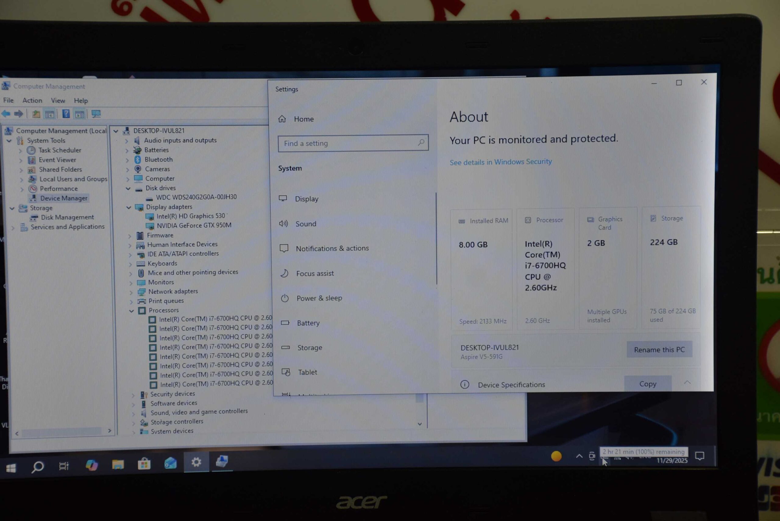 โน๊ตบุ๊คสายทำงานและยังเล่นเกมได้ด้วย กับรุ่น Acer Aspire V5-591G มาพร้อมสเปค CPU Intel Core i7-6700HQ (2.60 GHz up to 3.50 GHz) 4คลอ 8เธรต จัดเต็ม RAM 8 GB ความจุในตัวเครื่อง SSD 240 GB เปิดปิดเครื่อง เปิดรันโปรแกรมได้รวดเร็วทันใจเลย จอ 15.6 นิ้ว HD มีแป้นตัวเลขพร้อมใช้งาน การ์ดจอแยก NVIDIA GTX 950M (4GB GDDR5) เล่นเกมได้ วาโร ฟีฟ่า แร๊คนาร๊อค โรลบ๊อก มายคราฟ หรือจะเป็นงานกราฟฟิค ตัดรูป ตัดคลิป ตัดต่อวิดิโอ ทำงานเขียนแบบ Cad SketUp capcut Canva ก็ทำได้เลยครับ