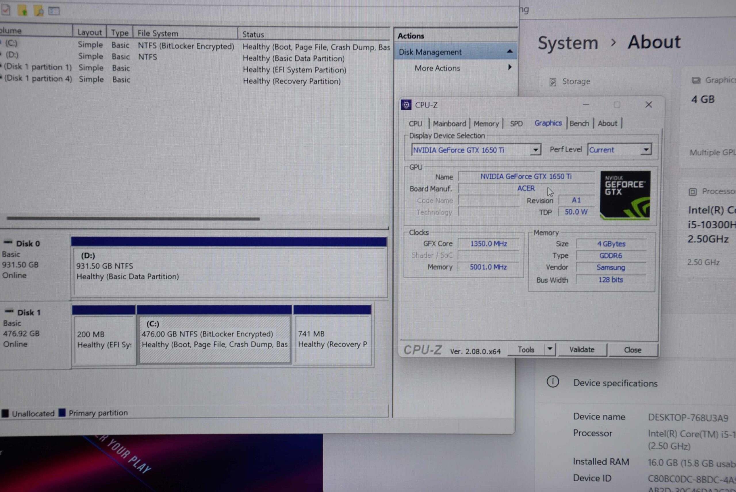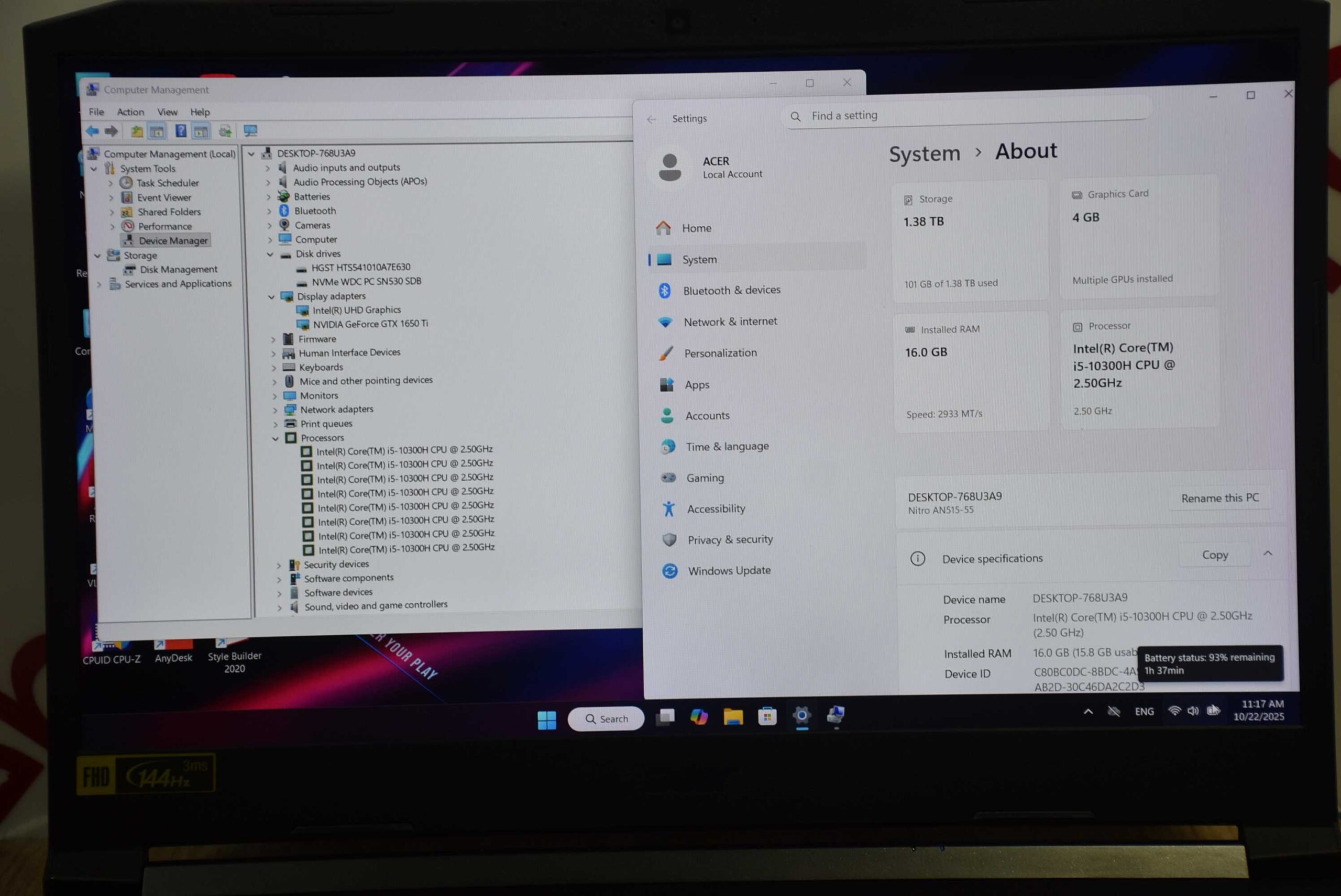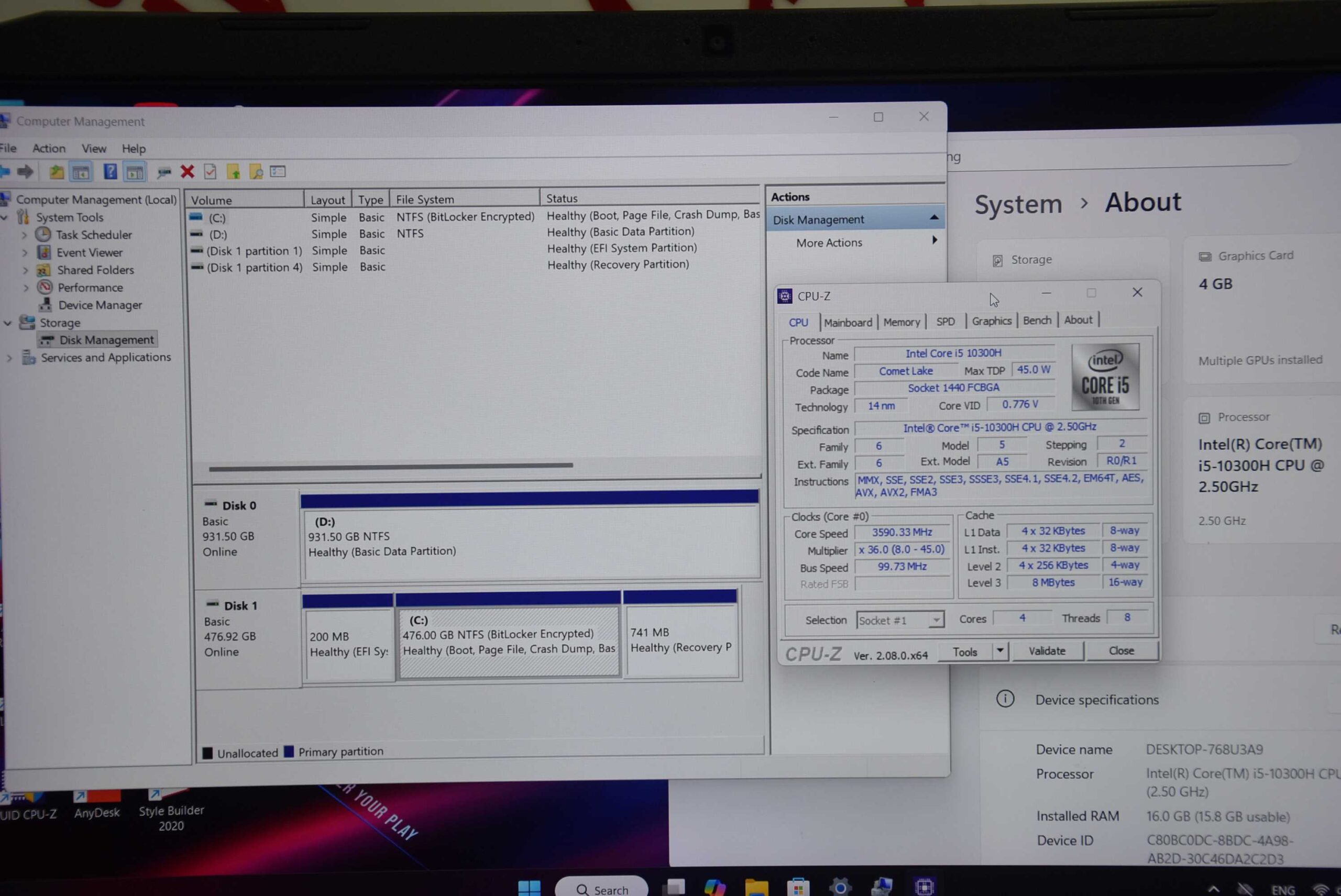 CPU Intel Core i5-10300H (2.50 GHz up to 4.50 Ghz)