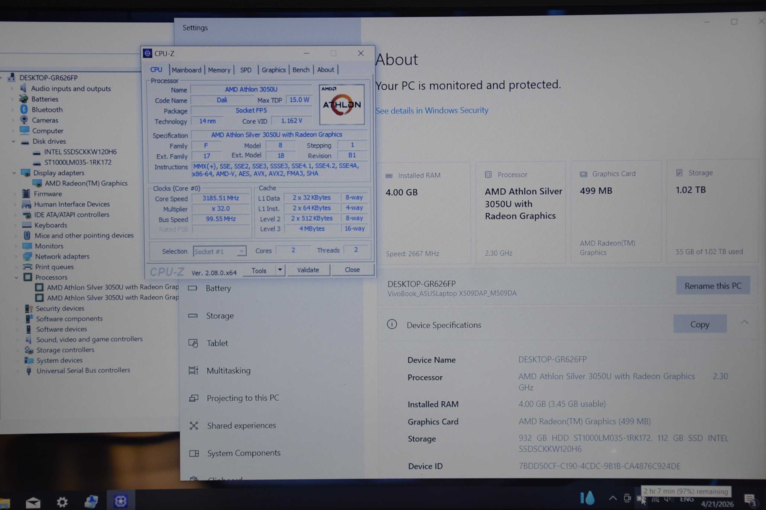CPU AMD Athlon Silver 3050U (2.30 GHz up to 3.20 GHz)