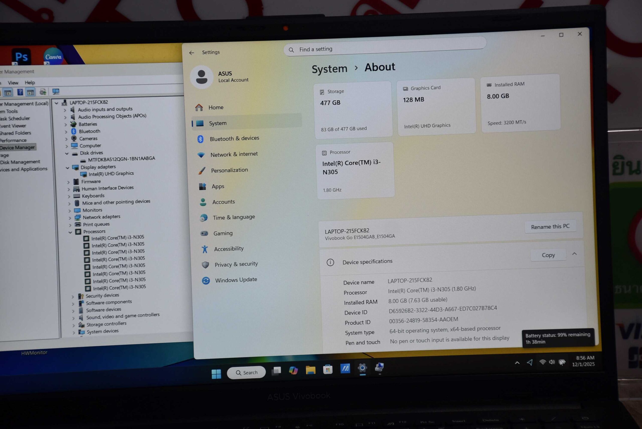 โน๊ตบุ๊คเน้นทำงานพิมงานสะดวกมีแป้นตัวเลขแยก กับรุ่น Asus Vivobook Go 15 X1504GA มาพร้อมกับสเปค CPU Intel Core i3-N305 (1.80 GHz up to 3.80 Ghz) 8คลอ 8เธรต RAM 8 GB ความจุเครื่อง SSD 512 GB M.2 มีการ์ดจอ Intel UHD Graphics Xe 32EUs ขนาดหน้าจอ 15.6 นิ้ว FHD ดูหนัง ฟังเพลงได้เพลินๆเลย งานออฟฟิส พิมงานทั่วไป เวิด เอ็กเซล หรือ สายกราฟิคเบาๆ ตัดต่อรูปภาพ เขียนแบบ CAD SketUp ก็ทำได้ ตัดคลิปตัดวิดิโอสั้นๆได้ แคนวา แคปคัต หรือจะเป็นเล่นเกมเบาๆ เกมออนไลน์ โรบ๊อก มายคราฟ นีดฟอสปีด และอื่นๆ ตัวนี้วินโดว์11โฮทแท้ฝังเครื่องสามารกดรีตั้งค่าใหม่โรงงานได้ครับ ตัวนี้ประกันศูนย์เหลือถึงวันที่ 11/11/2027 ยาวๆกันเลยครับ