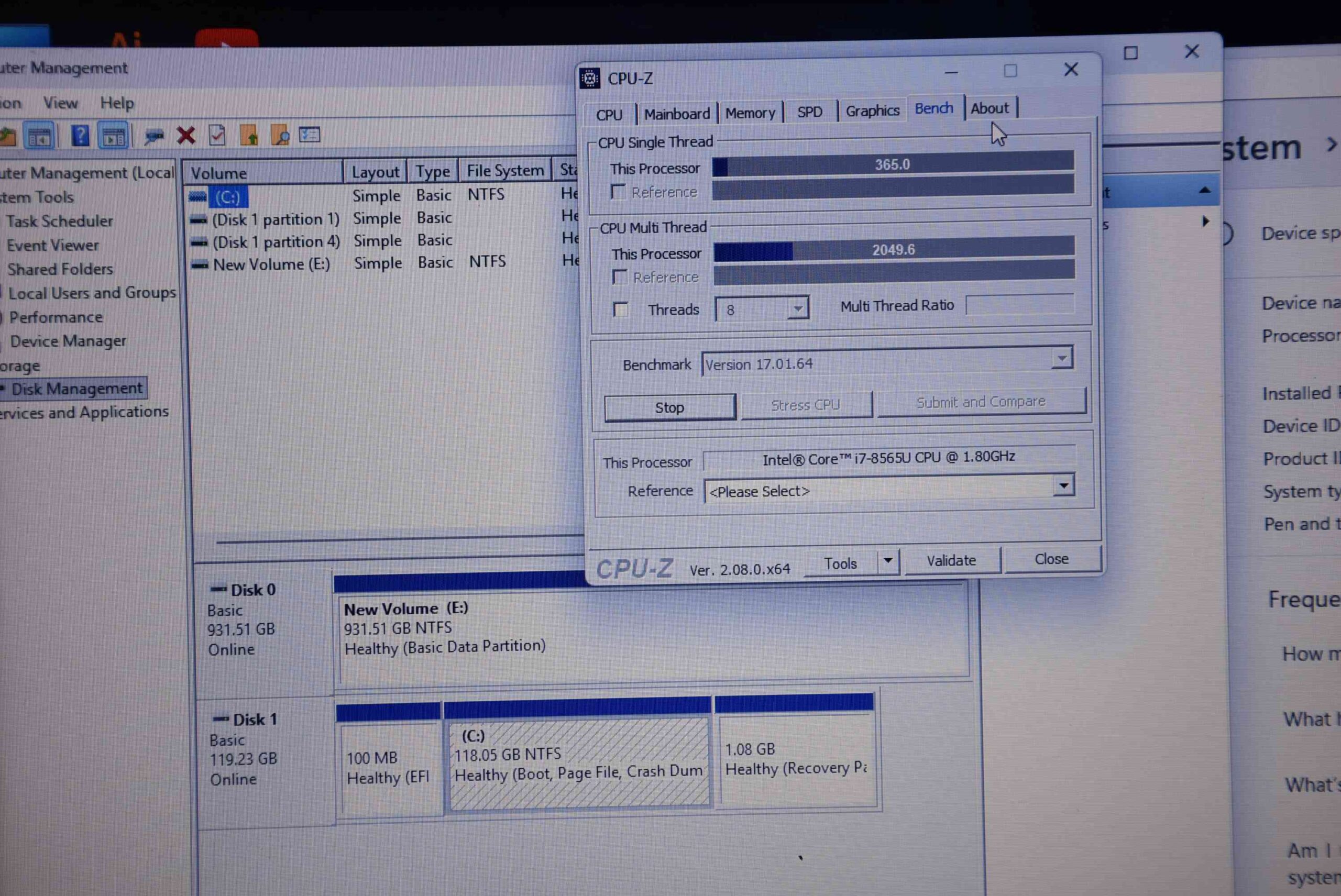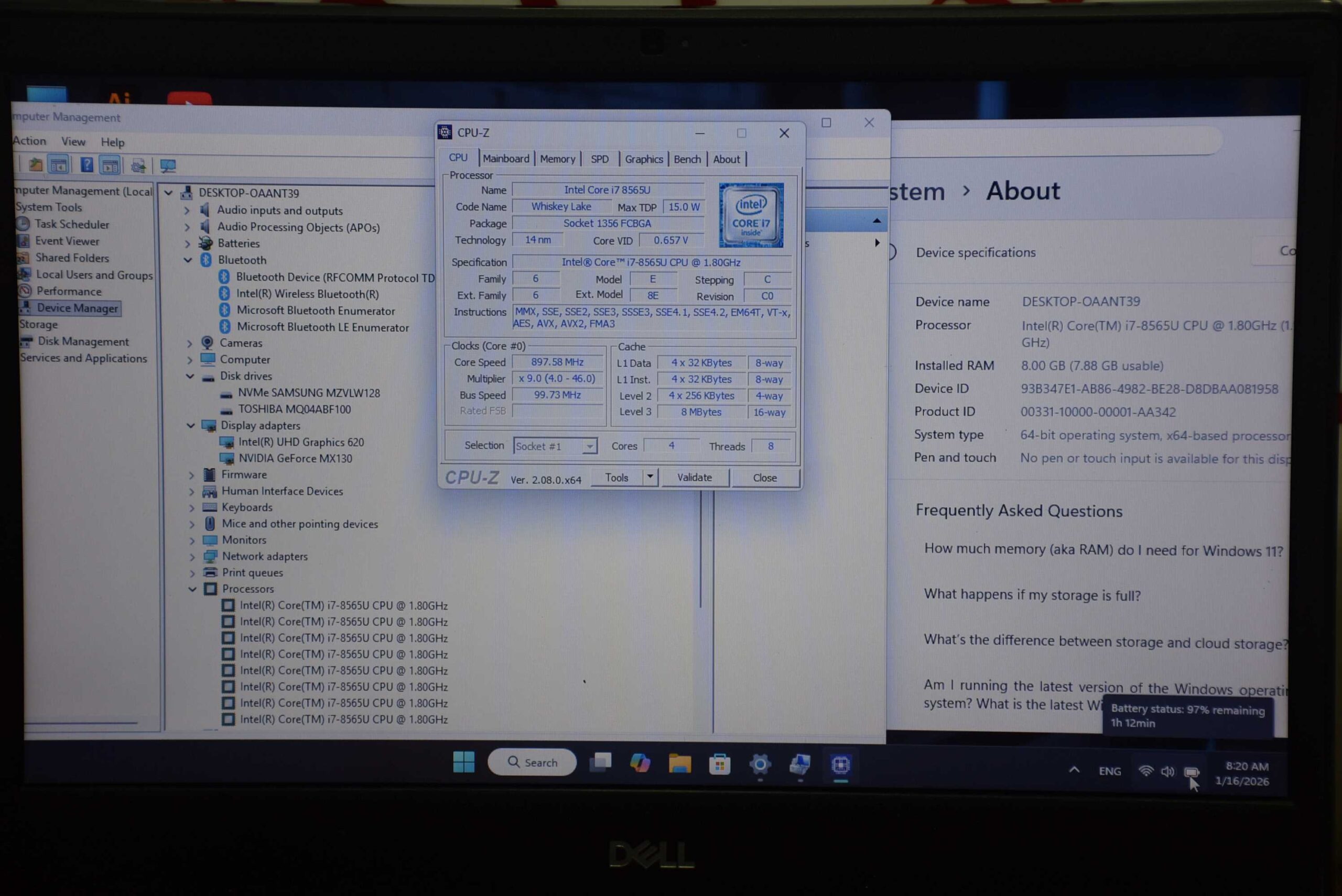 CPU Intel Core i7-8565U (1.80 GHz up to 4.60 Ghz)