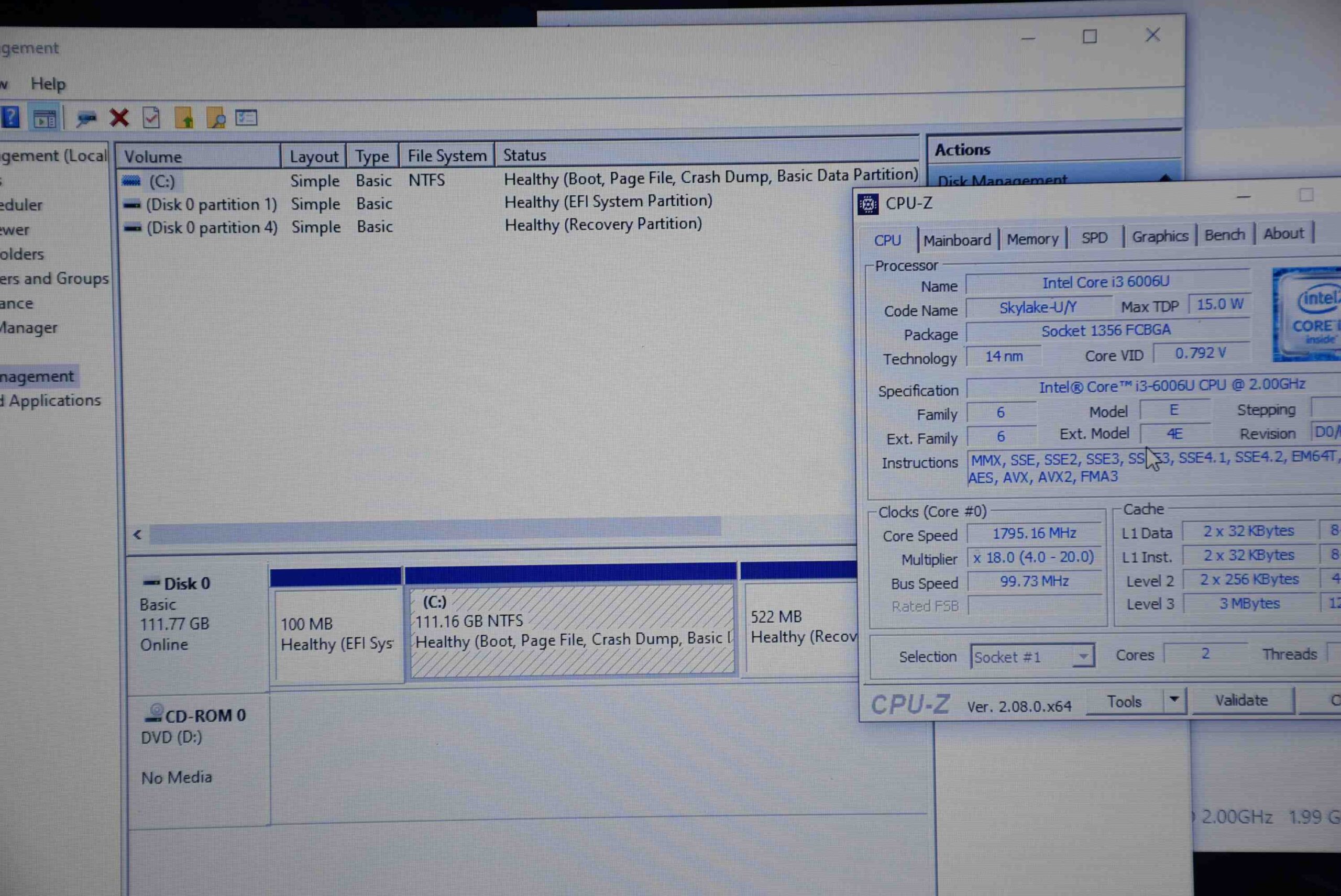CPU Intel Core i3-6006U (2.0 GHz, 3 MB L3)