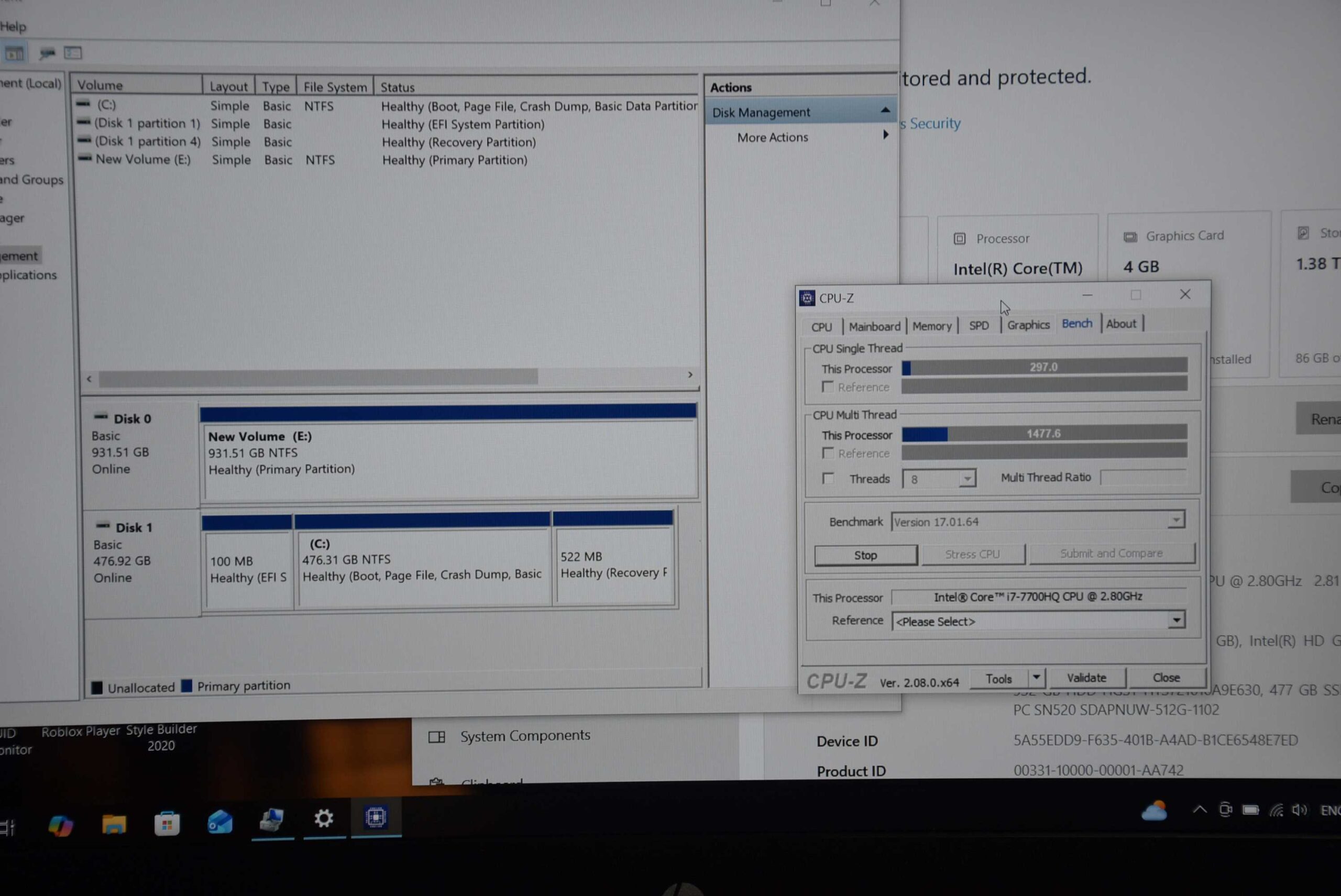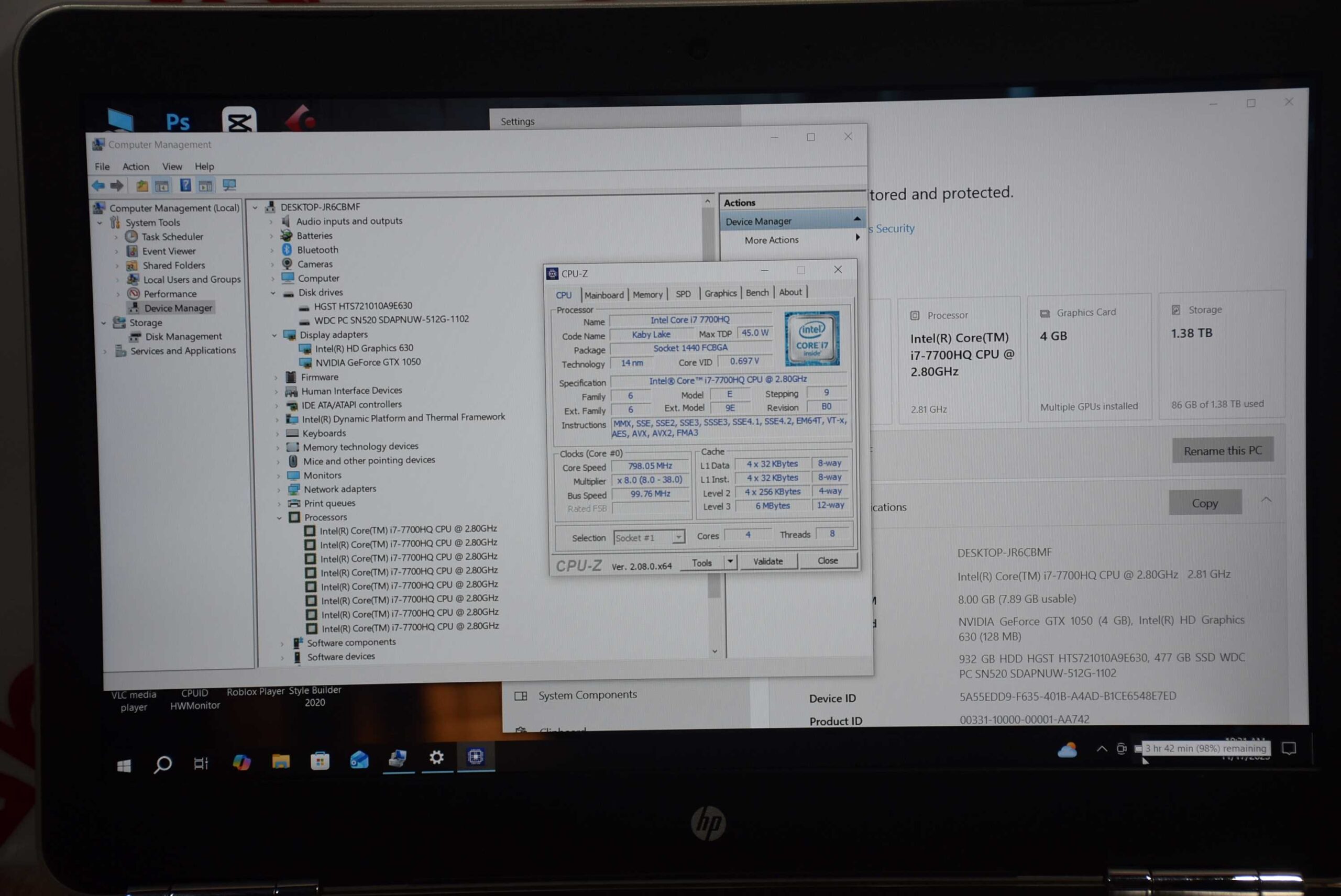 CPU Intel Core i7-7700HQ (2.80 GHz up to 3.80 GHz)