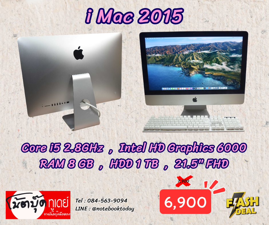 iMac 2015 ที่มาพร้อมสเปค CPU Intel Core i5 2.8GHz RAM 8 GB DDR3 ความจุภายในเครื่อง HDD 1000 GB มีการ์ดจอ Intel HD Graphics 6000 จอ 21.5 นิ้ว LED (1920×1080) จอใหญ่ๆสะใจ มีแป้นพิมและเม้าให้พร้อมใช้งาน พิมงานต่างๆ สายออฟฟิสเปิดใช้งานได้ทั้งวัน หรือจะฟังเพลง ดูหนัง เน็ตฟลิก ดิสนี่พลัสก็เพลินๆ งานกราฟิค งานตัดต่อ ทำรูป แต่งรูป ตัดต่อวิดิโอ Final Cut แคนวา แคปคัต ทำเพลง Logic Pro ก็ทำได้เลยครับ
