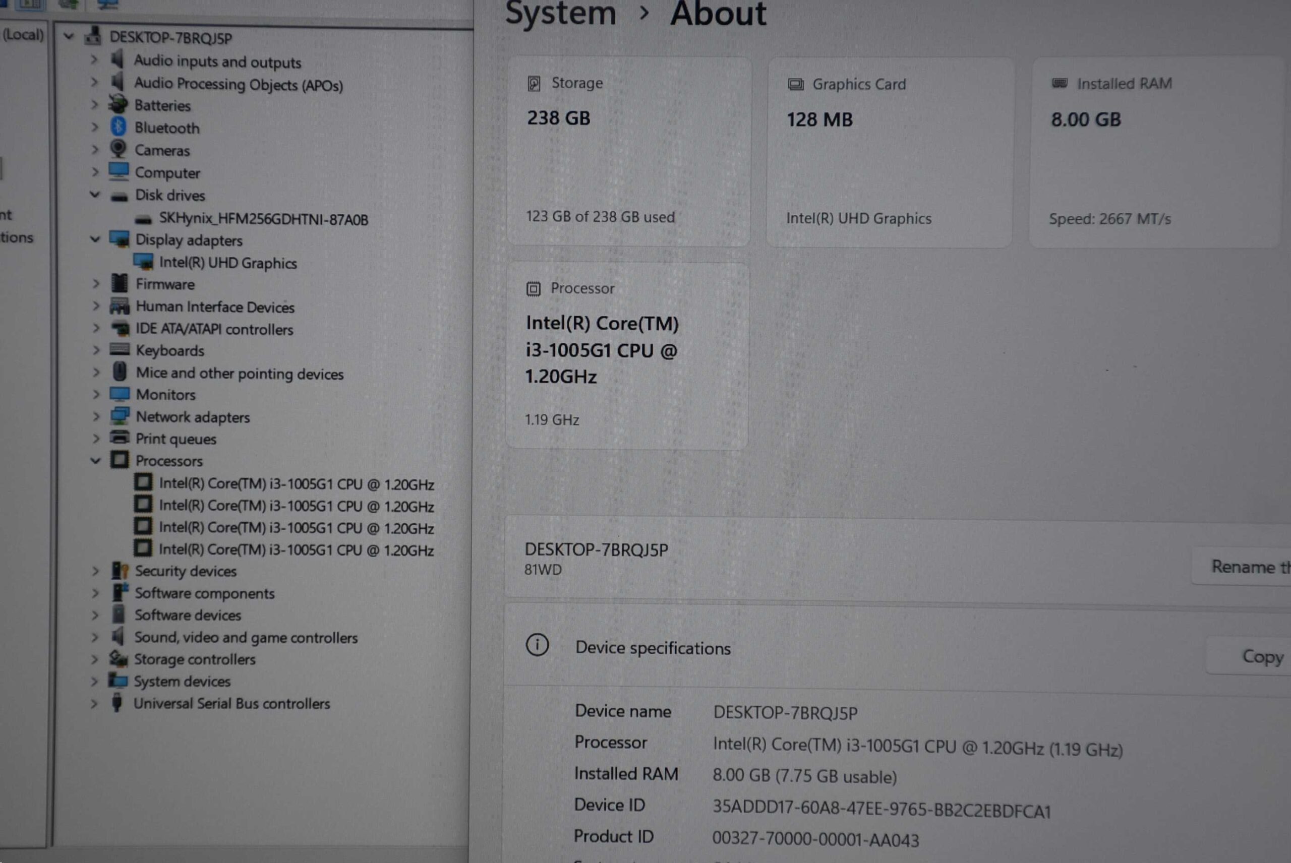 CPU Intel Core i3-1005G1 (1.20 GHz up to 3.40 Ghz)