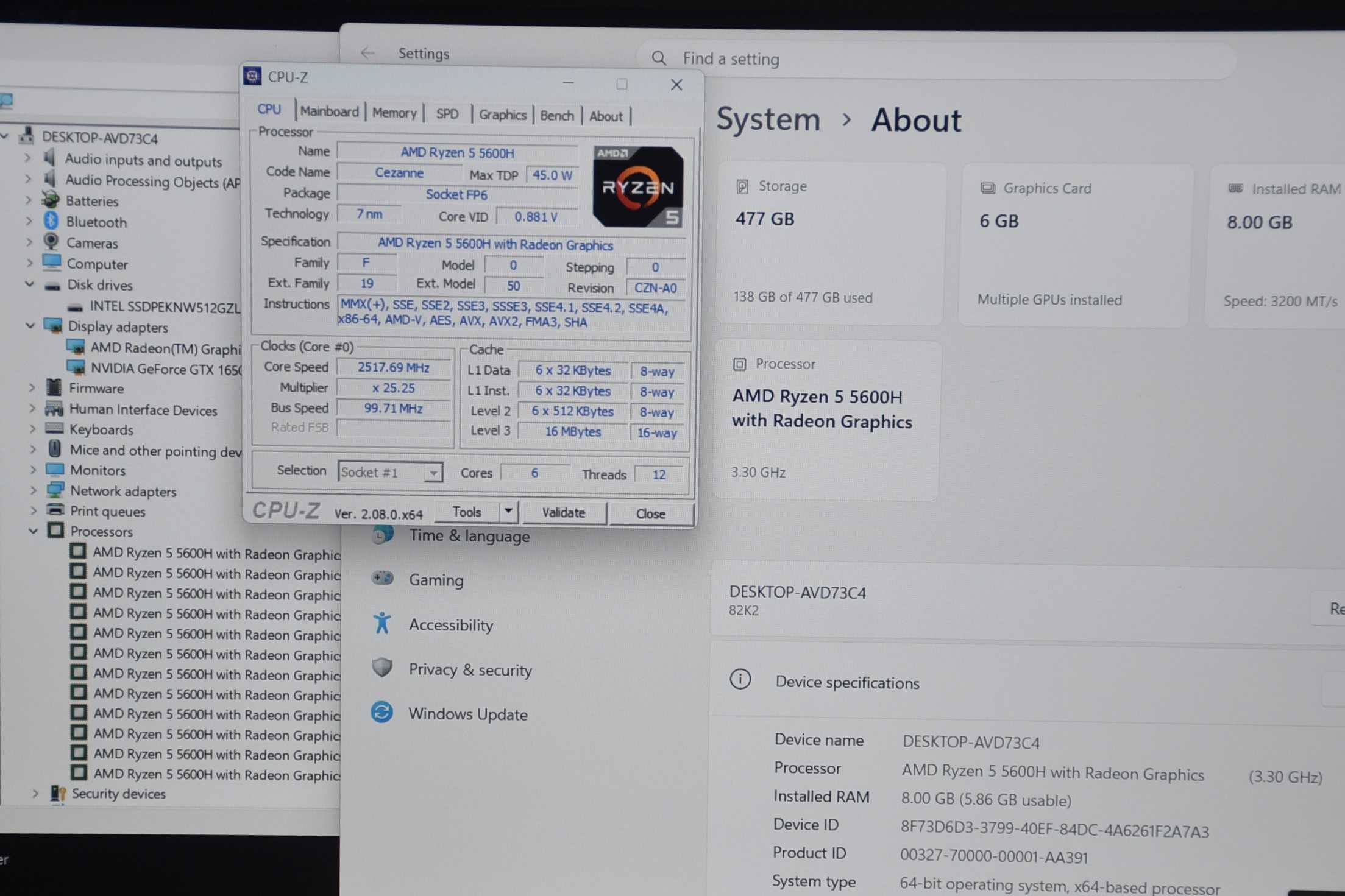 CPU AMD Ryzen 5 5600H (3.30 GHz up to 4.20 GHz)