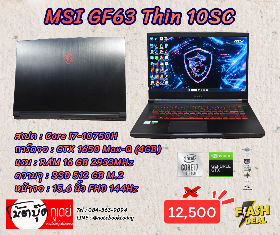 MSI GF63 Thin 10SC i7-10750H GTX1650Max-Q จอ15.6นิ้ว144GHz