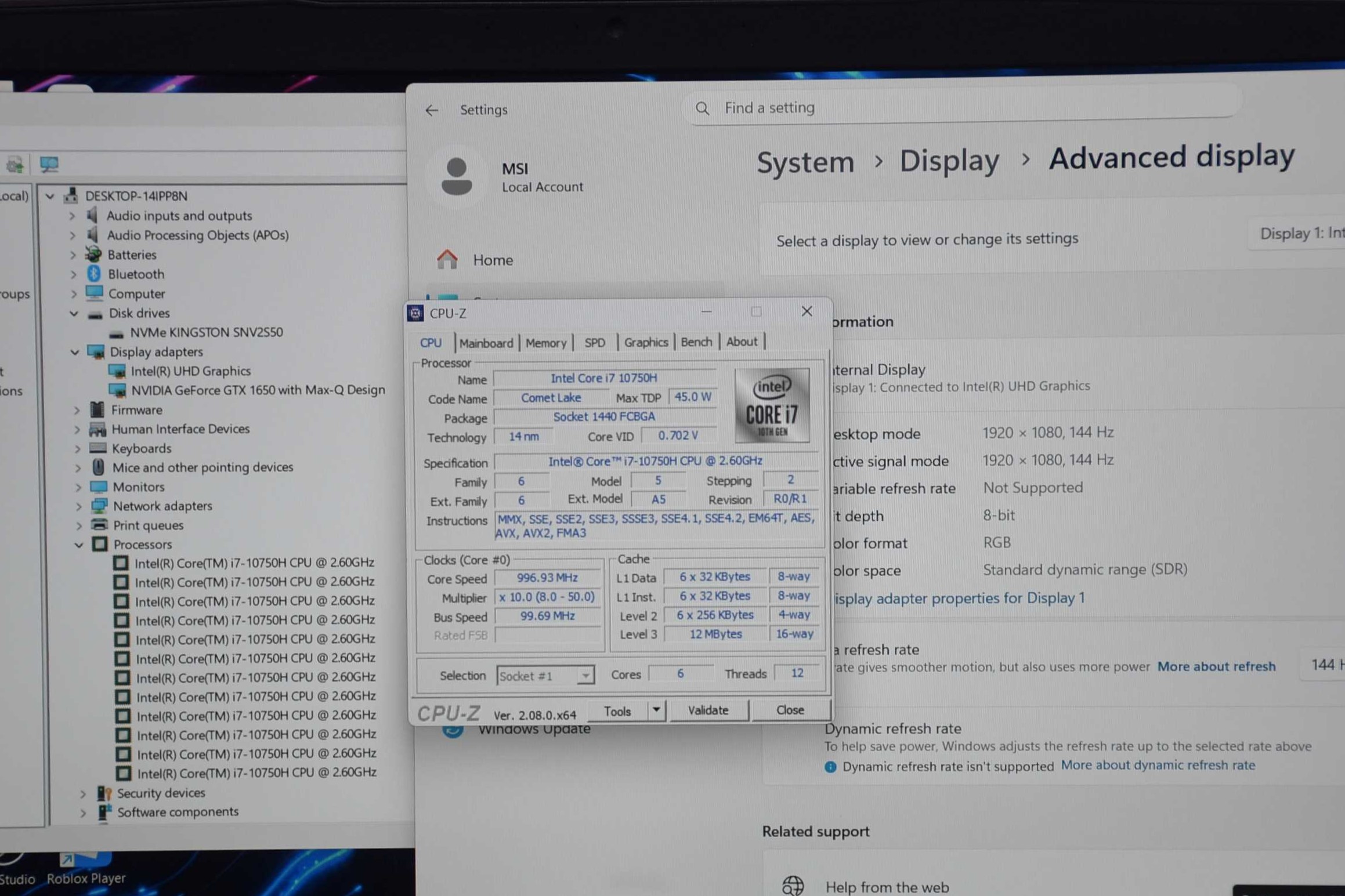 CPU Intel Core i7-10750H (2.60 GHz up to 5.00 GHz)